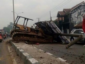 KEDUNGWARINGIN – Alat berat bulldozer terjatuh dari kontainer dan menabrak papan reklame di Jalan Raya Rengas Bandung, Kecamatan Kedungwaringin, Selasa (10/7/2018) pukul 05.00 WIB. Akibatnya, ….