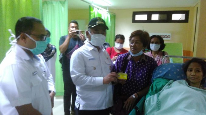 SAMBANGI PASIEN: Walikota Bekasi, Rahmat Effendi sambangi pasien penderita tumor ganas didampingi direktur RSUD, Camat, Lurah.