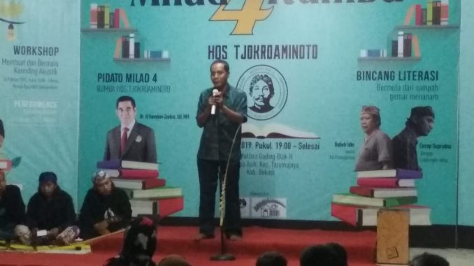 TARUMAJAYA – Peringatan milad ke 4 tahun Rumah Baca (Rumba) HOS Tjokroaminoto di Kabupaten Bekasi, diapresiasi oleh salah satu keturunan HOS Tjokroaminoto, Willy Tjokroaminoto.