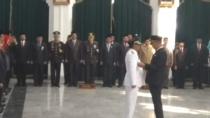 BANDUNG – Eka Supria Atmaja akhirnya sah menyandang jabatan Bupati Bekasi periode 2017-2022 setelah dilantik oleh Gubernur Jawa Barat, Ridwan Kamil di aula Gedung Sate, Bandung. Rabu (12/06/2019).