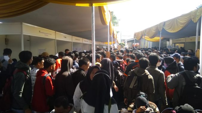 CIKARANG UTARA – Dinas Tenaga Kerja dan Transmigrasi (Disnakertrans) Kabupaten Bekasi kembali helat Job Fair. Job Fair di tahun 2019 diikuti sebanyak 35 perusahaan dengan jumlah lowongan kerja (loker) yang disediakan sebanyak 2800.