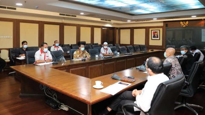 CIKARANG PUSAT -Pengurus Papmiso (Paguyuban Pedagang Mie dan Bakso) Indonesia didampingi oleh Anggota DPRD Kabupaten Bekasi Fraksi PDI-P, Nyumarno, SM, melakukan audiensi dengan Menteri Koperasi & UKM RI, Teten Masduki, Selasa (26/01/2021).