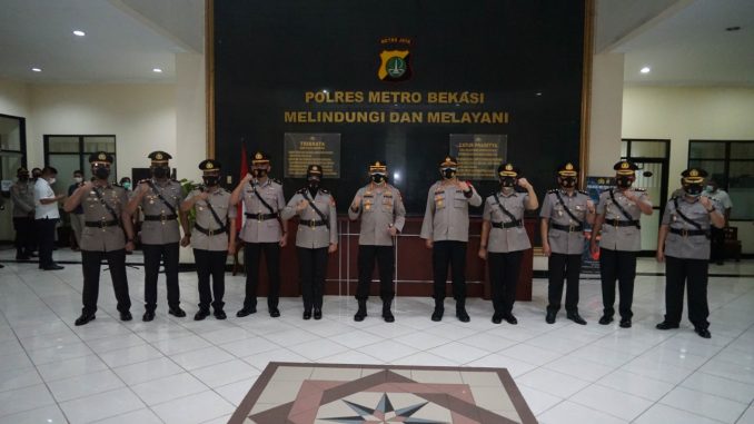 CIKARANG UTARA – Polres Metro Bekasi kembali melakukan mutasi sejumlah jabatan di lingkungannya pada Senin (08/02/2021).