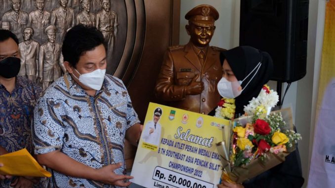 TAMBUN SELATAN – Pemerintah Kabupaten Bekasi memberikan penghargaan kepada dua pesilat peraih medali ajang Southeast Asia (SEA) Pencak Silat Championship 2022, yang digelar pada 25-27 Februari di OCBC Arena Singapura.
