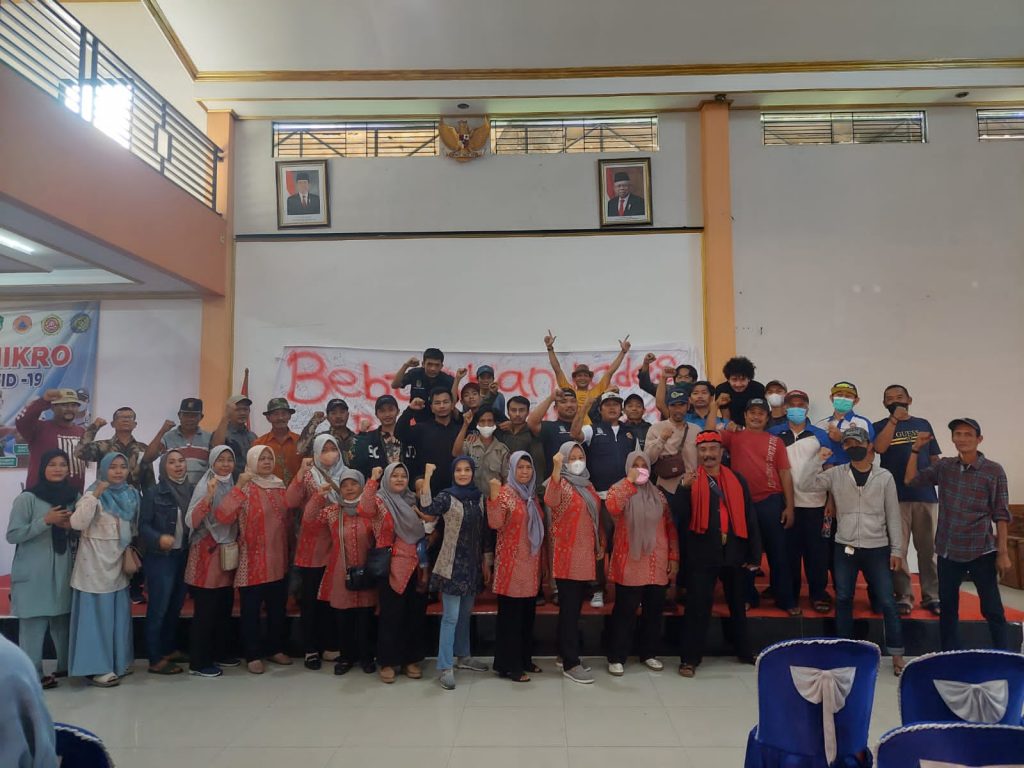 TAMBUN SELATAN – Ratusan warga menggelar aksi di Kantor Desa Lambangsari, Kecamatan Tambun Selatan, Kabupaten Bekasi, Jawa Barat, Minggu (11/09/2022).