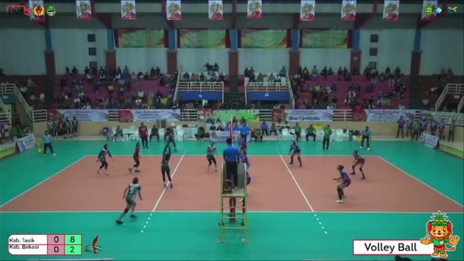 Tim Bola Voli Putri Kabupaten Bekasi harus menelan pil pahit kekalahan dari Kabupaten Tasikmalaya dengan skor 3-0.