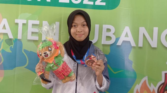 Pejudo Kabupaten Bekasi Asya Syafitri sukses meraih perunggu di nomor -63 standar putri.