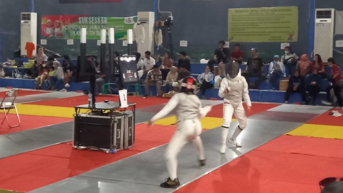 SUBANG – Atlet cabang olahraga anggar Kabupaten Bekasi meraih medali perunggu pada Porprov Jabar XIV 2022 yang digelar di SOR Badminton Gotong Royong, Kabupaten Subang, Sabtu (12/11/2022). Medali ini diperoleh Desy Anjani di nomor floret putri perorangan.