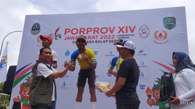 SUBANG – Atlet Ikatan Sepeda Sport Indonesia (ISSI) Kabupaten Bekasi meraih medali emas dan perunggu di nomor individual road race (IRR) Porprov XIV Jabar 2022, Senin (14/11/2022). Medali emas diraih Abdul Soleh, dan perunggu disumbangkan M Reihan Maulidan.