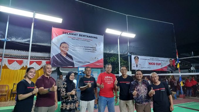 BEKASI TIMUR – Turnamen Bulu Tangkis Nico Cup antar RW se-Bekasi Jaya mulai dihelat pada Sabtu (04/02/2023) di Lapangan Trikungga, RW 13, Bekasi Jaya, Bekasi Timur.