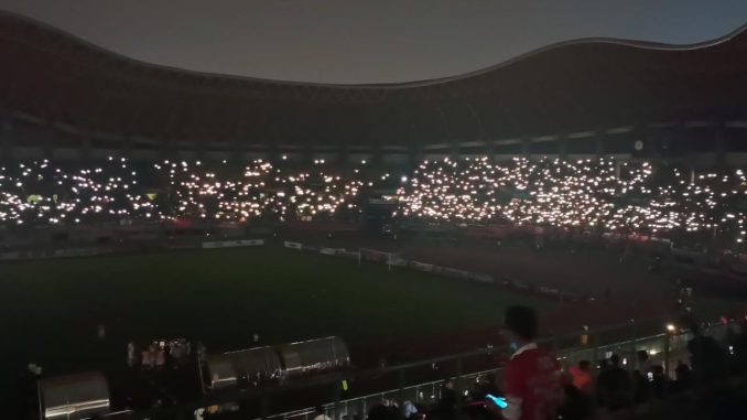 Ribuan sporter kecewa, sambil bernyanyi menunjukan kekecewaan. “Tiketnya mahal, listriknya mati,” demikian nyanyian ribuan suporter.