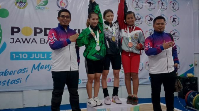Pemberian medali di cabang olahraga angkat besi Popda 2023 Jabar.
