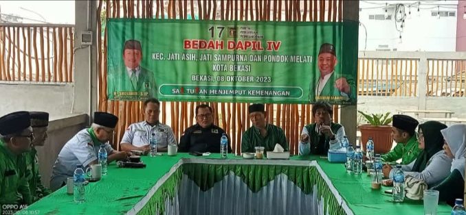 JATIASIH – DPC PPP Kota Bekasi optimis meraih suara maksimal di Dapil 4, yang meliputi Kecamatan Jatiasih, Pondokmelati dan Jatisampurna pada Pemilihan Umum (Pemilu) tahun 2024. PPP Kota Bekasi menargetkan bisa meloloskan minimal 1 calegnya menjadi anggota DPRD Kota Bekasi dari dapil 4.