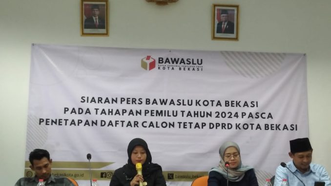 Ketua Bawaslu Kota Bekasi Vidya Nurul Fathia (dua dari kiri) saat menyampaikan keterangan.