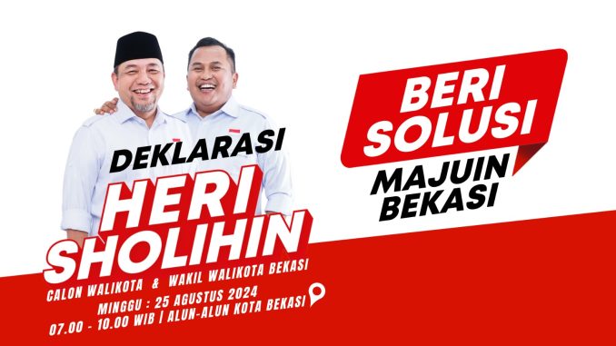 BEKASI SELATAN – Pasangan Bakal Calon Wali Kota (Bacawalkot) Bekasi dan Bakal Calon Wakil Wali Kota Bekasi Bang Heri Koswara dan Bang Sholihin akan dideklarasikan pada Minggu, 25 Agustus 2024.