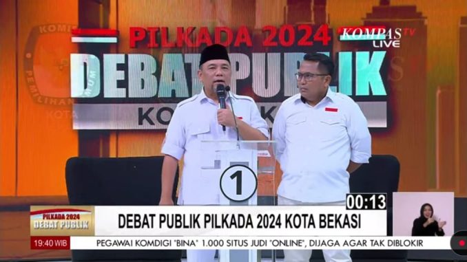 JAKARTA – Calon Wali Kota Bekasi nomor urut 1, Heri Koswara berkomitmen memperbaiki Kota Bekasi. Hal itu disampaikan dalam debat perdana di Studio Kompas TV, Palmerah, Jakarta Pusat, Jumat (01/11/2024).
