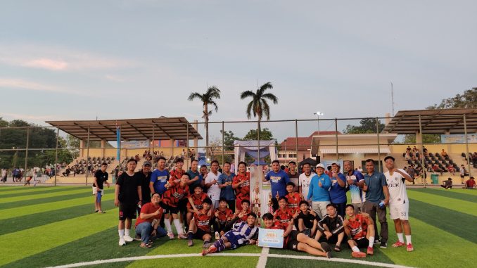 Tim DPK KNPI Tambun Selatan saat merayakan gelar juara DPD KNPI Kabupaten Bekasi Cup 2026 di Lapangan Mini Soccer Sukatani, Minggu (26/04/2026).