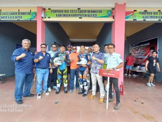 SUBANG – Pebalap motor Kabupaten Bekasi meraih medali perak di kelas standar 150cc perorangan upper pada Poprov Jabar XIV 2022 di Sirkuit Subang, Kamis (10/11/2022). ….