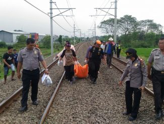 Polsek Cikarang Barat Evakuasi Korban Tabrak Kereta